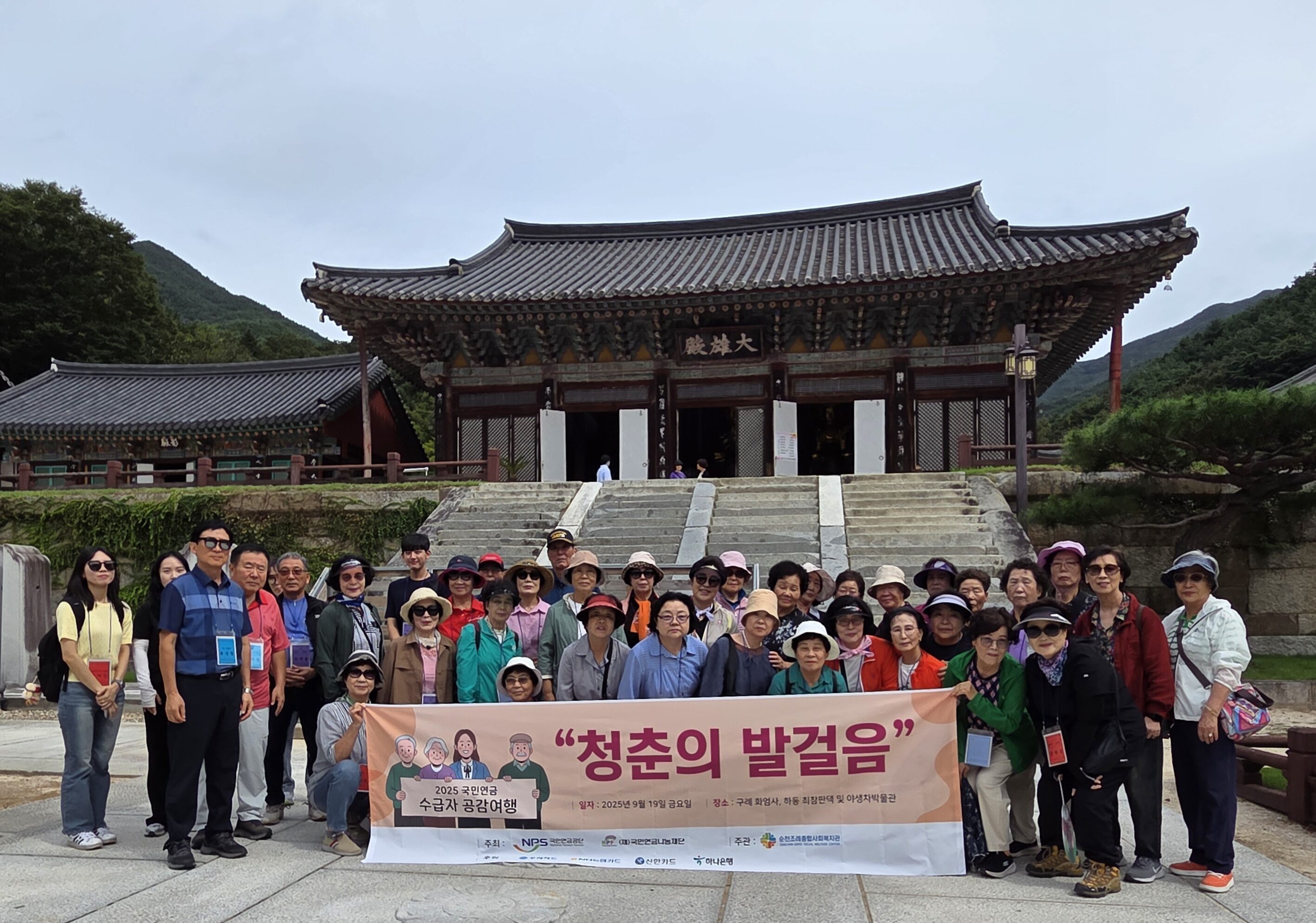 순천조례종합사회복지관이 지난달 19일 국민연금 수급자와 배우자 34명과 함께 ‘청춘의 발걸음’ 힐링 공감여행을 진행했다. 가을 정취를 만끽하며 구례 화엄사, 하동 최참판댁, 야생차박물관 등을 방문했다.
